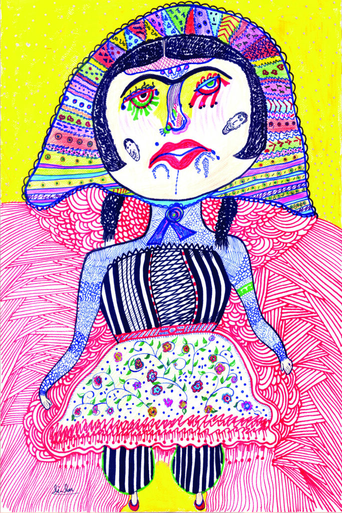 Li Lan (Zanjan, Iran. 1950) is based in Lahijan, Iran. Her work is focused on a cultural identity investigation of the past and its significance in current times. Naive and wild characters, with intense colors and Iranian textiles, are part of his raw and spontaneous aesthetic.